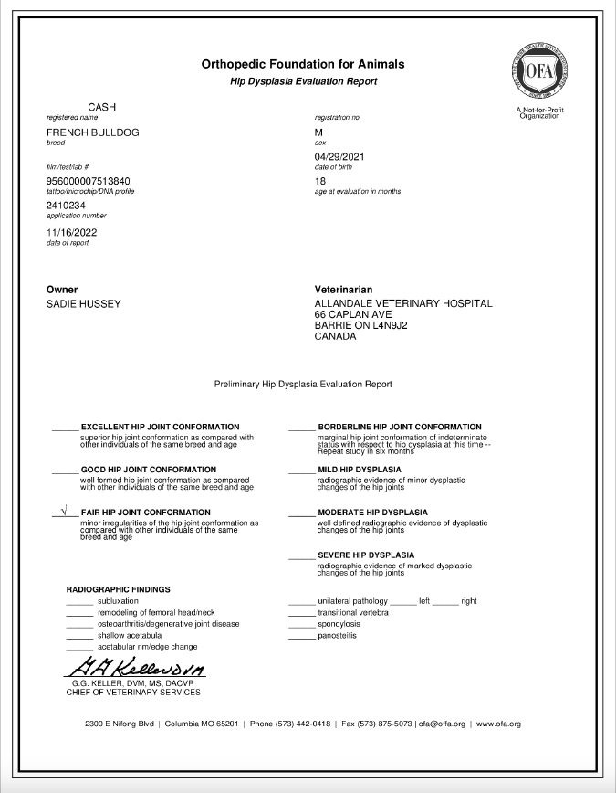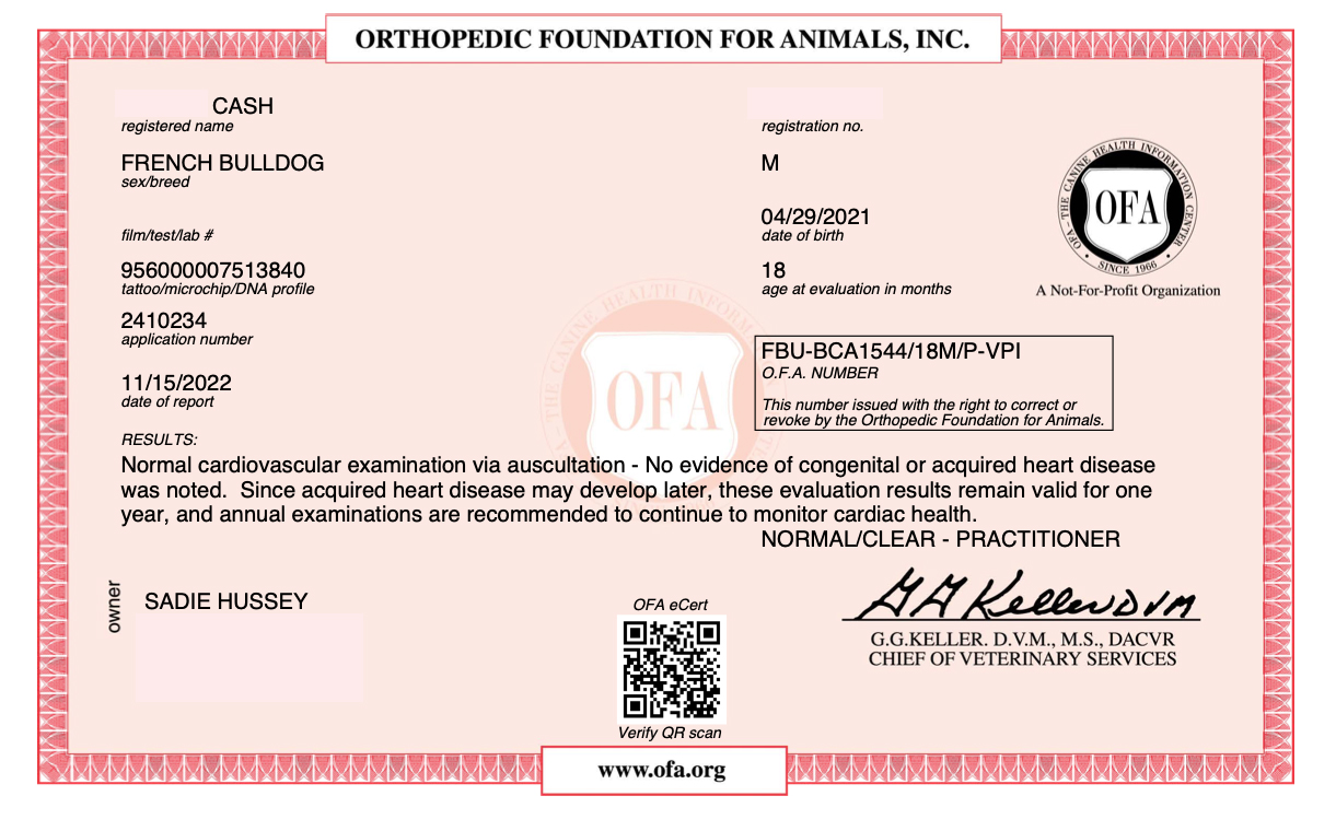 Why is OFA testing important? French bulldogs are prone to breed specific diseases such as BOAS, hip dysplasia and IVDD. What does that mean?