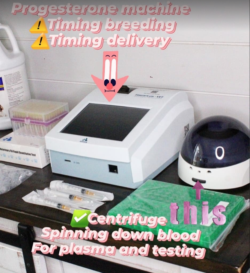 Do we do our own progesterone testing? Answer is yes! We wanted to have more control of our breeding program and have realtime results. Most vets dont offer same same day results and the one that does ends up being a 5 hour round trip for us. So in 2019 I became a wondfo representative. I can help you purchase a progesterone machine to help you have a better understanding of your dogs fertility and hormone levels as well as planning labor and delivery. The machine is $3500 Canadian ordered directly from us here at rad frenchies and shipped to you with a manufacturers warranty from wondfo.